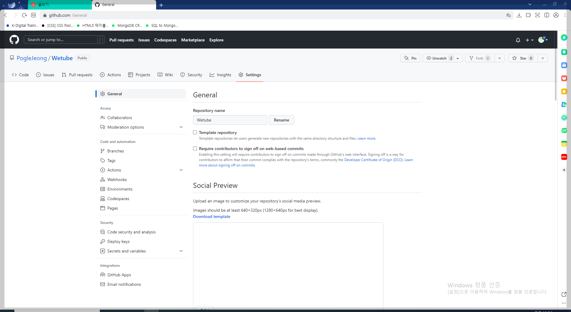 1. github respository 명 변경.
